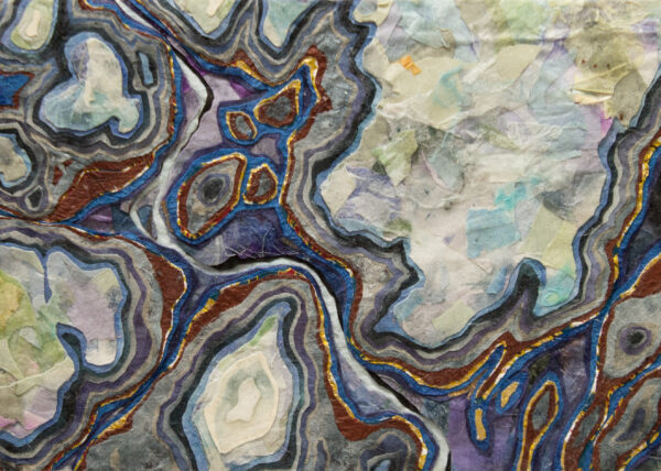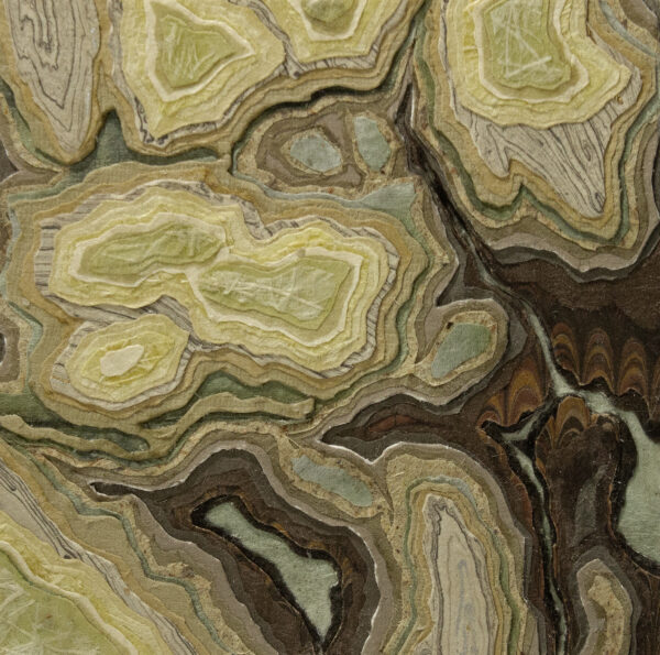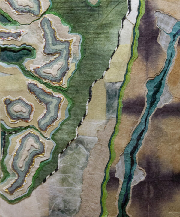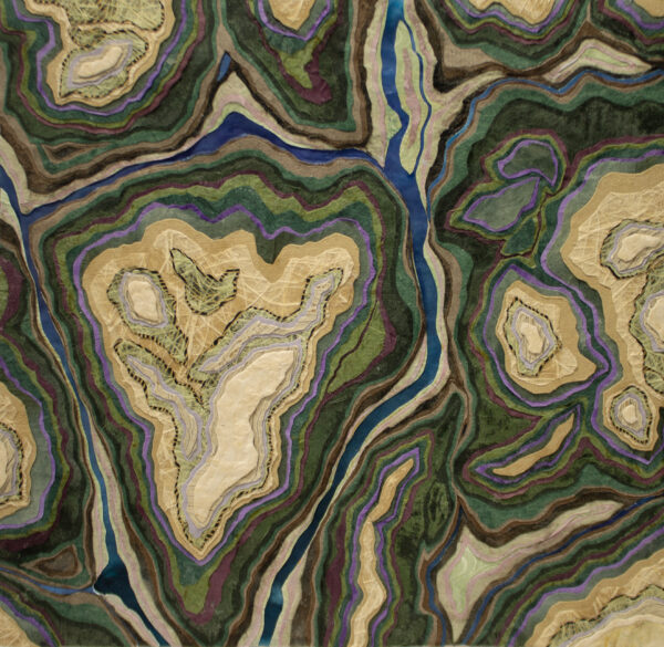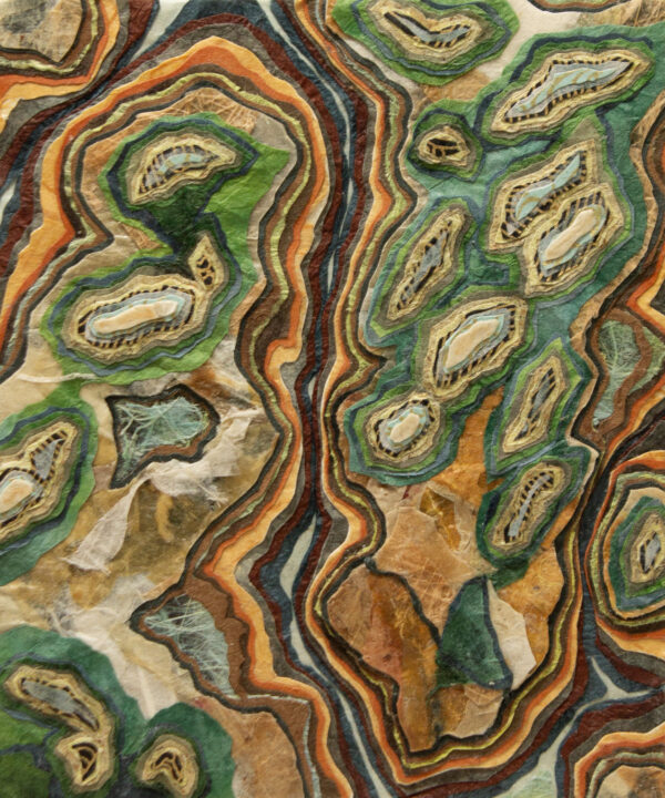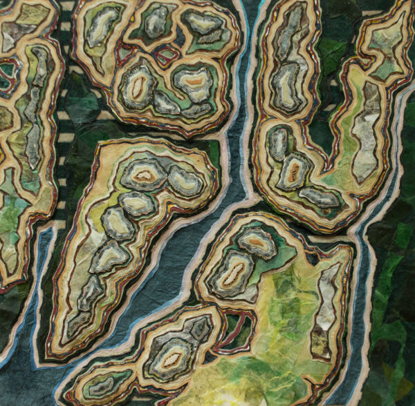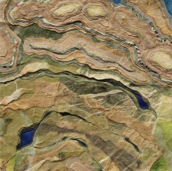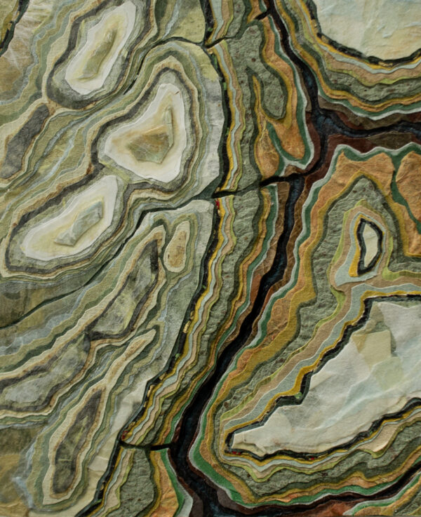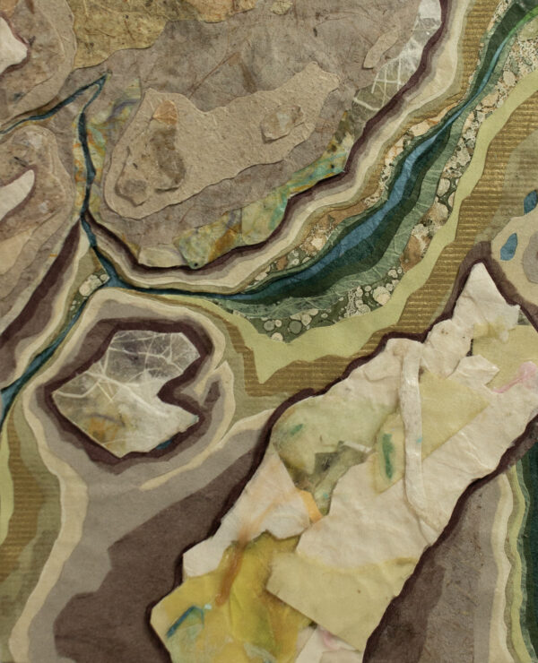 “Making a connection between landforms created through erosion by natural forces and relief collage created by cutting away layers of paper is fundamental to my practice. In my artwork, as in nature, the process of layering indicates a state of transformation, becoming a record of change through time.”