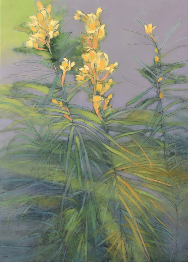 Ms. Malo grew up around dairy farms and woodlands in Central Massachusetts. Her interest in nature reflects her childhood playing outside both in the woods and on the farms, and helping with the family’s part-time business raising chrysanthemums and lettuce. A sense of wonder and delight permeates all her responses to nature, as seen in her paintings.